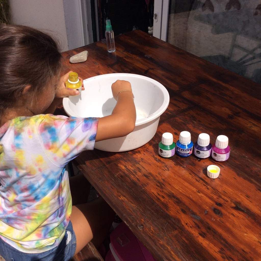 Cela faisait longtemps que nous n’avions pas sorti la peinture Arasilk, et cela faisait aussi un moment que Miss Alyssonne voulait réaliser un T-shirt pour sa petite cousine Léa c’est enfin chose faite malgré les vacances le temps manque et dire que dans quelques jours c’est la rentrée , sniff le temps passe beaucoup trop vite !