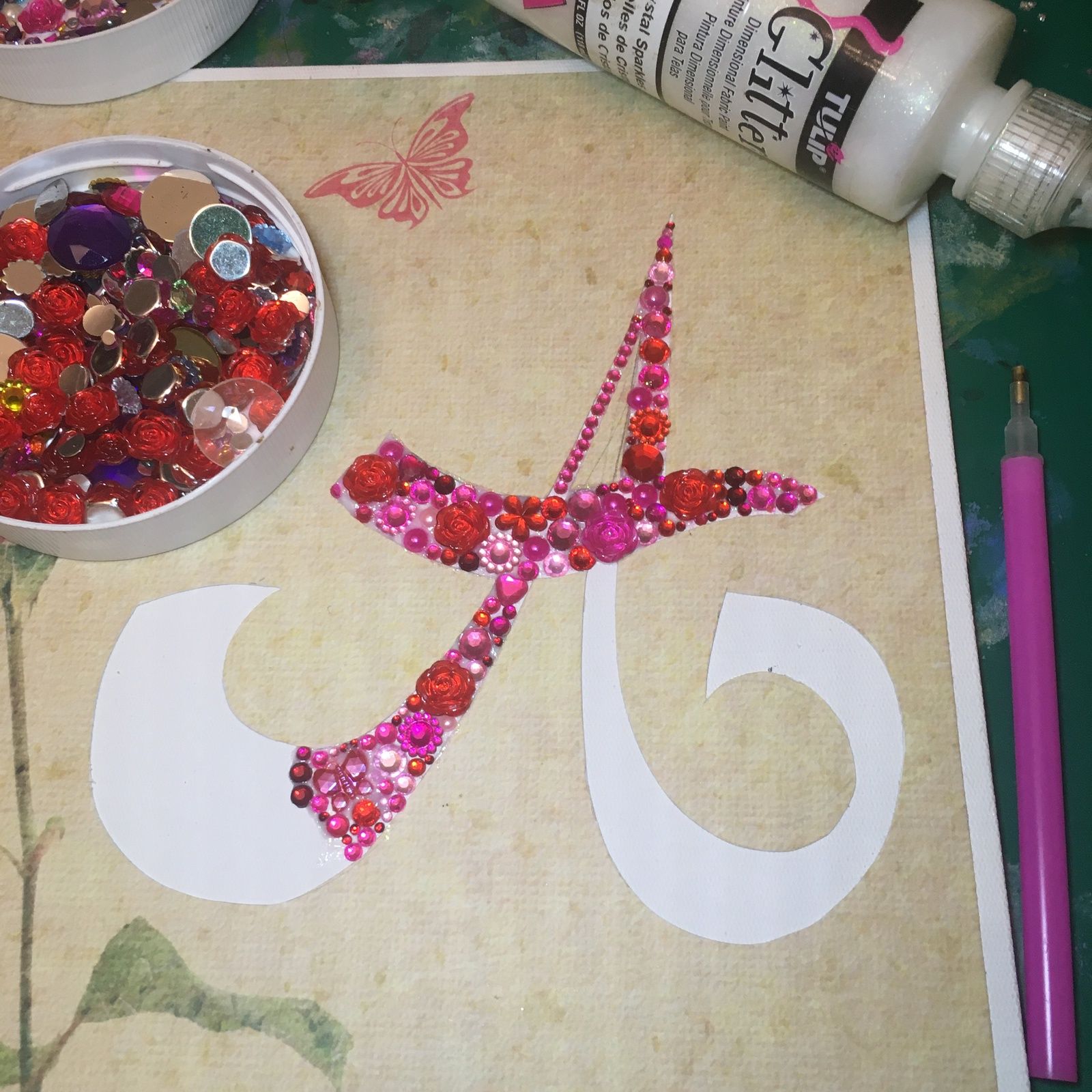 Voici le nouvel atelier que je propose pour le prochain mercredi un tableau sur toile avec une lettre initiale du prénom en strass.